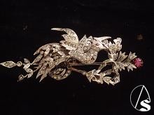 Es una importante donación realizada por N. H. Mº del Carmen López Reina. Se trata de un bello alfiler del siglo XIX elaborado en plata grabada y engastada con diamantes en talla rosa y dos granates color tinto. Lo compone un gran pájaro montado por medio de muelles sobre la flecha del alfiler, los muelles producen una continúa vibración, y esta potencia el brillo de las piedras, de manera que conjuntan una vistosa pieza que fue estrenada en la pasada Semana Santa.