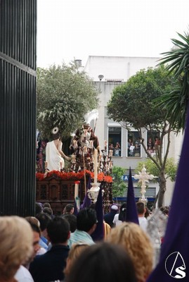 A las 18,05 horas se abrieron las puertas de la capilla por donde salen los pasos, ya que debido a la baja altura de la puerta de la parroquia sería imposible que lo hicieran desde dentro de la misma. En ese momento comenzaron a sonar los notas musicales de la banda de cornetas y tambores juvenil Ntro. P. Jesús de la Humildad que preceden a la Cruz de Guía. Los nazarenos del paso de misterio iban saliendo en orden por la calle de la capilla efímera hasta llegar a la glorieta que lleva por nombre el de los titulares de la hermandad. En el segundo tramo figuraba el Senatus que se estrenaba junto con el estandarte, obras ambos del taller de José Antonio Grande de León.