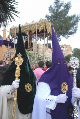 Si la del año pasado también será recordada al ser la primera salida procesional como hermandad de penitencia, en la de este año se le ha incluido el carácter singular de una hermandad como son las túnicas, que son de tela de sarga blanca la túnica y la capa y el antifaz morado, en tela de sarga, con botonadura en color morado.