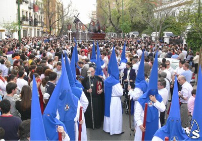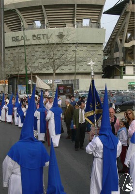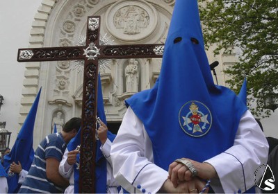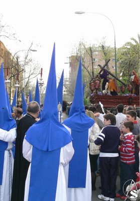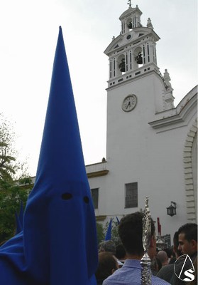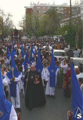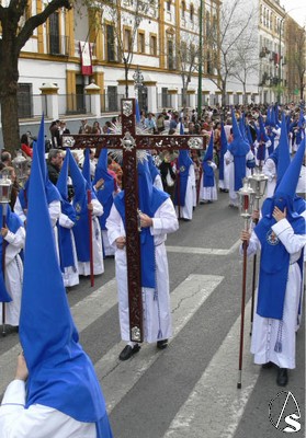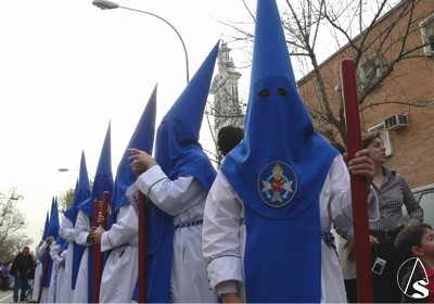 El Preste, los penitentes tras el paso, multitud de niños y niñas en el cortejo, antiguos alumnos que veían a su Hermandad con nazarenos… Ayer Heliópolis era alegría interior y sobriedad exterior en su túnica blanca con antifaz y escapulario azul. Felicidades de todo corazón a los hermanos de La Misión.