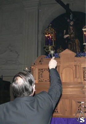 Pero el Vía Crucis de esta Hermandad comenzaba en el interior de la Iglesia del Sagrario, donde el párroco José Marín Cruz, bendijo la nueva Cruz del Nazareno y la Hermandad de Pasión de Plasencia, regaló un cuadro de su Virgen Titular, con la advocación de Rosario, en recuerdo de su participación en este cortejo 2008, en el cual también formaban una buena representación de la Orden de San Clemente, Sacramental del Sagrario y la Pura y Limpia.