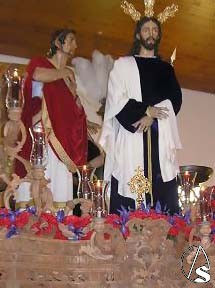 Calza 45 costaleros, representa la escena donde Jesús es interrogado por el gobernador romano Pilatos y donde se le pregunta si "eres tú el Rey de los Judios".