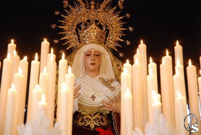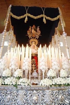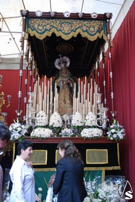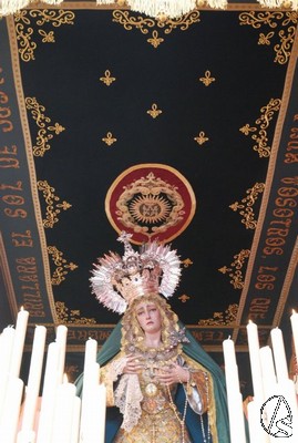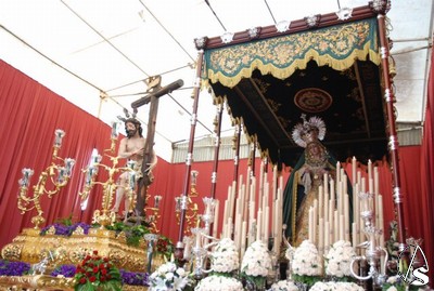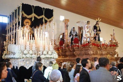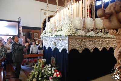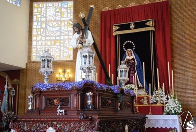 Allí, estaba terminando la misa y, a continuación, tuvo lugar un recuerdo para los costaleros que llevan 15 años sacando a los titulares de la hermandad y una exaltación. Los pasos se encontraban encendidos y se podía ver el magnifico estado de la Virgen de los Dolores tras la restauración a la que la ha sometido su autor, Gamero Viñau. Luce esplendorosa y con un tocado diferente al de años anteriores. El paso de misterio lleva terminado la talla de los respiraderos y de la canastilla y en años venideros se empezará a dorar, ya que así lo ha decidido la hermandad, con lo que podremos apreciar una joya andante en nuestra ciudad.