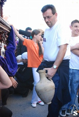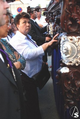 El paso llevaba un crespón negro en memoria de Manuel Rodríguez, costalero de la hermandad y miembro de la junta de gobierno de la hermandad de Todos los Santos.