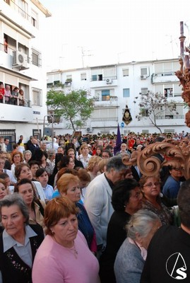 La Virgen de los Dolores hacía su primera salida procesional tras la pequeña restauración llevada a cabo por su autor, José María Gamero Viñau, el pasado mes de febrero. La sociedad filarmónica Ntra. Sra. de las Nieves de Olivares acompañó al paso de palio interpretando un repertorio en el que se combinaban las marchas alegres con otras más clásicas.