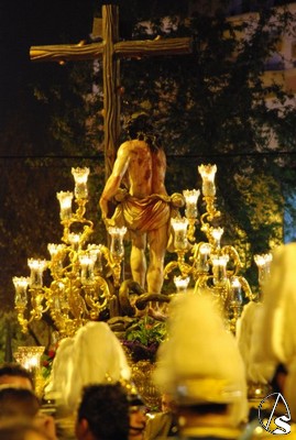 La primera levantá de ambos pasos se realizó por los donantes de órganos y una de las velas de los dos pasos llevaba el lema de la institución “dar para recibir”.