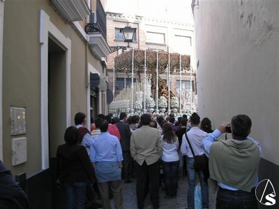 Paco Dópido. Imágenes de la Hermandad de Santa Genoveva, a su paso por la calle Arfe, en la tarde del Lunes Santo.
