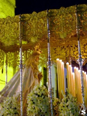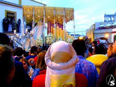 Un estallido de luz y color puso el contrapunto en la salida de la Borriquita, que en San Agustin lució la nueva ropa del Señor de la Paz, una túnica morada y mantolin rojoy la música la puso la banda de la hermadad que esta semana recorrerá varios puntos de Andalucia con sus sones. La Virgen de la Palma lució un brillante exorno floral de rosas color blanco roto en el frontal acompañada de la banda de música de Morón.