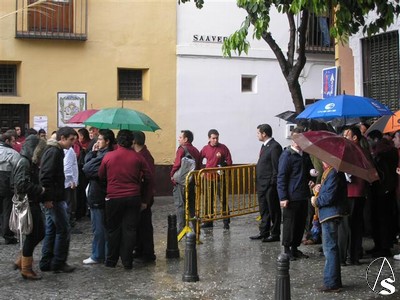 Paco Dópido. La jornada del Miércoles Santo de 2008, será de triste recuerdo para todos los cofrades sevillanos. En la plaza de San Martín, la lluvia hizo acto de presencia, justo a la hora fijada para la salida, por lo cual,  la Hermandad de la Sagrada Lanzada, decidió no realizar su Estación de Penitencia.
