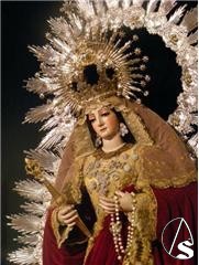 Arte Sacro. La Virgen de la Sangre, titular de la Hermandad de la Vera-Cruz de Gerena se ha vestido de gloria con motivo del mes de mayo, mes de María, aunque no es la primera vez que la Virgen se ha vestido de gloria en el siglo pasado y en lo que va de este, si es la primera vez que lo hace tal y como se vestía en los siglos XVIII y XIX.