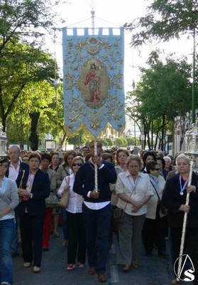 Francisco Santiago. Que la Festividad de María Auxiliadora haya caído en sábado, ha propiciado que el Rosario de la Aurora presidido por el Simpecado de María Auxiliadora Coronada haya sido multitudinario y con más presencia policial, lo que ha supuesto el poder transitar por el centro de las calles.