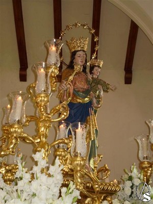 Les mostramos a continuación unas fotografías realizadas esta mañana de la Virgen en su paso y de las andas de Santa María Mazarello y San Juan Bosco.