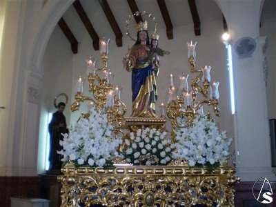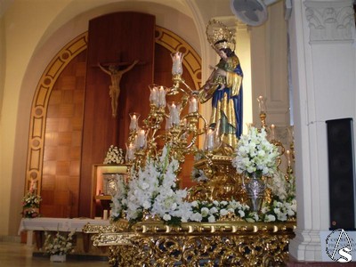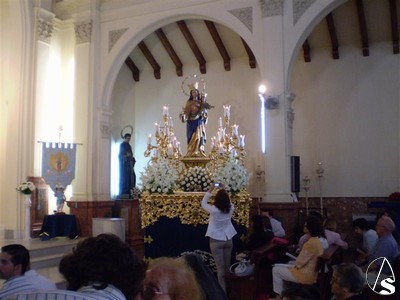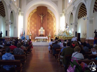 Al caer este año la festividad en sábado ha permitido que sea mayor la asisitencia de fieles a la solemne misa, así como la visita de cofrades en general para ver a la Virgen en su paso.
