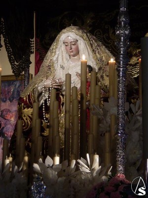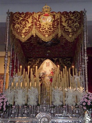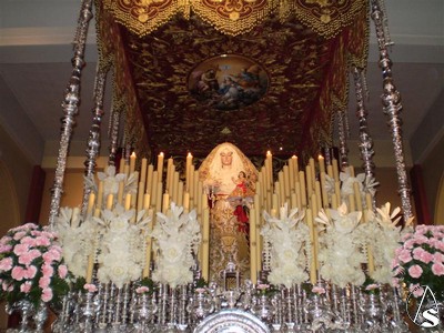 Será en este paso en el que sea coronada y realize la primera de sus procesiones extraordinarias, ya que para la siguiente del día 14 la Virgen irá sin el palio, vestida de gloria y con su ráfaga.