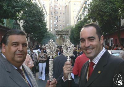 Dos buenos amigos compartían varas en la procesión bajo palio de la Dolorosa, pero también comparten cargos en el consejo. Uno es delegado de Glorias, concretamente Miguel Martínez Gsrcía, el otro es el prodelegado de Vísperas, José Manuel Rodríguez Núñez.