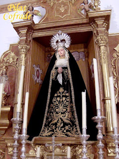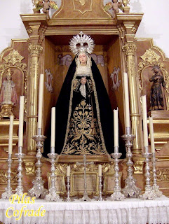 Pilas Cofrade. Aquí, la segunda entrega de reportajes de las dolorosas de Pilas ataviadas de negro en el mes de los difuntos, en este caso, la Santísima Virgen de los Dolores es la protagonista de hoy.Muchos podrán admirarla tal cual la vimos en su pasado besamanos, pero fue tal la expectación que causó el atavío de la Señora, que la Junta decidió mantenerla tal cual durante este periodo de tiempo para que todos los devotos y cofrades de Pilas tuvieran oportunidad de visitarla tal cual la pudimos ver en su besamanos.