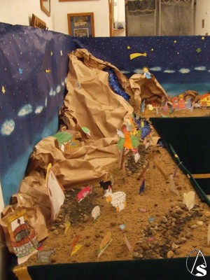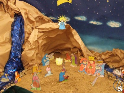 Provincia. Curioso Belén realizado con papel en la Hdad. de Ntro. Padre Jesús de La Lantejuela