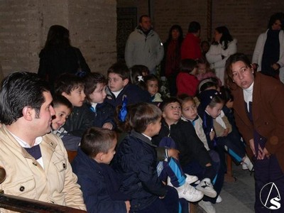 Arte Sacro. En el día de la Festividad de la Esperanza, los niños del Colegio de Cristo Rey de Triana, felicitaron a la Santísima Virgen de la Esperanza de Triana, pronunciando por sus labios angelicales hermosísimos piropos a la Madre de Dios.