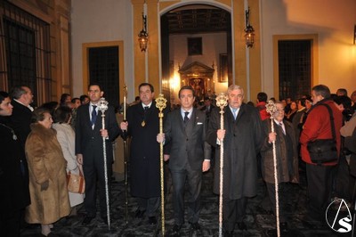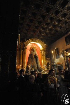 Daniel García Acevedo. Desde la tarde noche de ayer 18 de diciembre, ya se encuentran en la iglesia de San Gregorio los titulares de la hermandad del Museo, Stmo. Cristo de la Expiración y María Stma. de las Aguas.