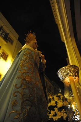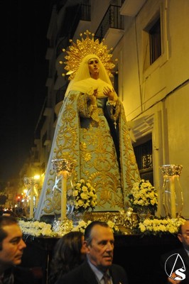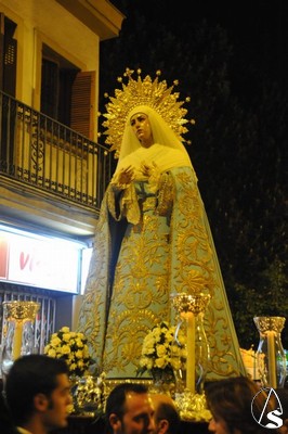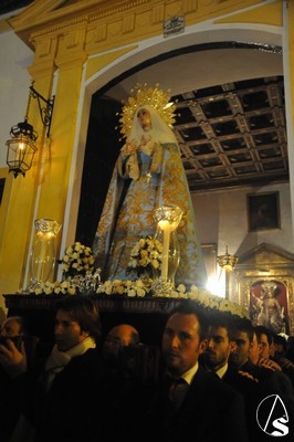 La Virgen de las Aguas lucía manto y saya bordados, de color celeste y su habitual tocado monjil.