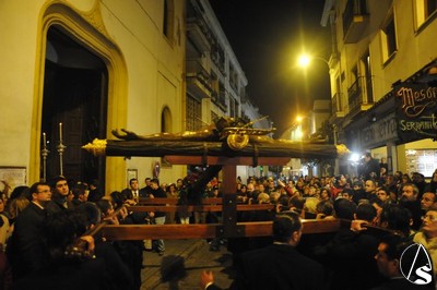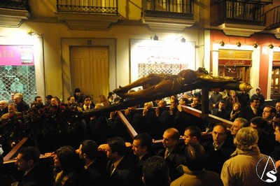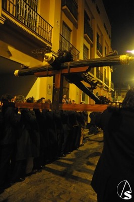 El Cristo de la Expiración iba en unas grandes andas portadas por hermanos de la cofradía, lo que le daba una elevación suficiente para poder ser visto desde lejos.