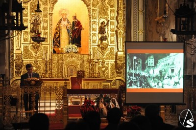 El acto fue presentado por el hermano mayor, José Luis del Pueyo Ortíz y explicado por el archivero José Damian Huerta Hidalgo. También se iban proyectando diapositivas explicativas de los libros.