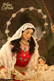 Arte Sacro. Si hace unos días mostrábamos en imágenes el Nacimiento instalado en el Altar Mayor de la Iglesia Parroquial de Pilas, hoy nos trasladamos a la Ermita de la querida Patrona para poder disfrutar con imágenes del Nacimiento que la Hermandad cada año instala en el Altar Mayor, dentro del camarín de la Santísima Virgen de Belén, que aparece sentada expectante al momento del parto; una vez llegado el 25 de diciembre, el Niño Dios de la Santísima Virgen luce en su pesebre velado por la imagen de Nuestra Señora y la de San José, obra reciente del escultor sevillano Ramos Corona.