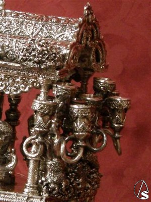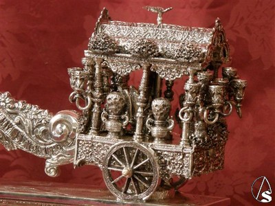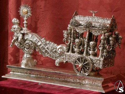 El diseño es del orfebre sevillano Manuel J. Almagro. En el llamador figura la carreta de plata con el simpecado ginense unido por una rolea que hace de martillo sobre el que un ángel sostiene la custodia, símbolo de la Hermandad Sacramental.