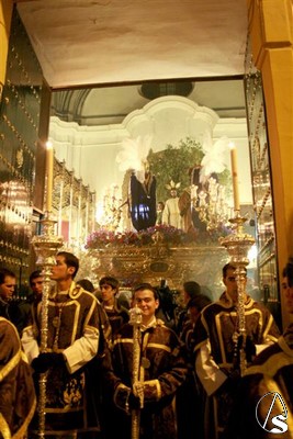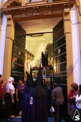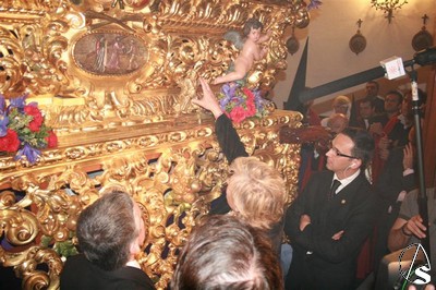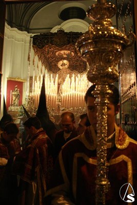 La Concejala de Fiestas Mayores del Ayuntamiento de Sevilla, Rosamar Prieto-Castro realizo la primera llamada al paso del Señor del Soberano Poder en el interior de la capilla de San Andrés. Según nos confeso la propia Rosamar, era la primera vez que tenía el placer vivir una sensación como esta y le sorprendió mucho el peso del llamador.