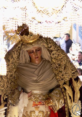 La Virgen de las Angustias visitaba tras la Macarena Santa Ángela y el Palacio de la calle Dueñas, encaminando sus últimos tramos horarios hacia su templo consagrado y Santuario de Los Gitanos.