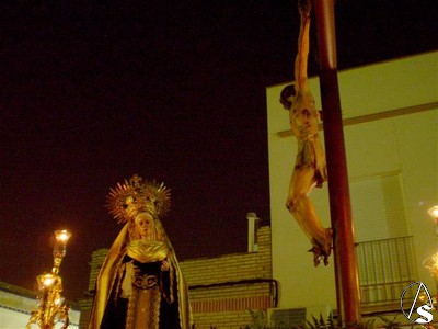Eduardo Fdez. López. El Viernes de Dolores procesionó por las calles de Palomares del Río el paso con el Cristo de la Vera Cruz y la Virgen de los Dolores.