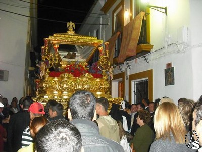 Sobre las 8 de la tarde hacía su salida el paso del Santo Sepulcro que llevaba a Jesús Yacente, seguido de su Santísima Madre Ntra. Sra. de los Dolores.