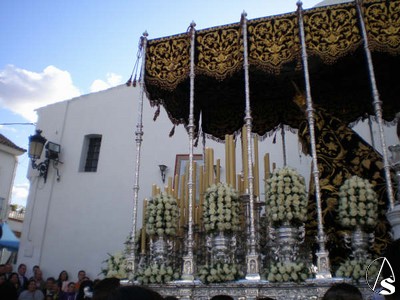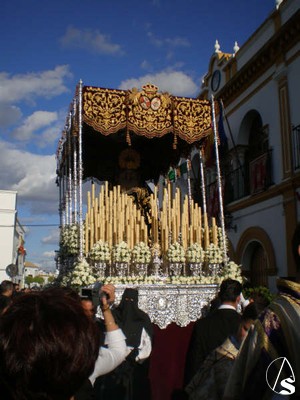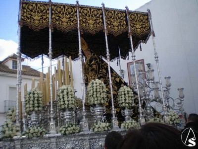 José Ramón Rodríguez García. El pasado Viernes Santo, a las 18:00 H de la tarde, el Oratorio de la Hermandad de la Soledad de Albaida del Aljarafe abrió sus puertas para dar comienzo a la Estación de Penitencia que con solemnidad y fervor iban a realizar los sagrados Titulares de dicha corporación: el Santísimo Cristo de los Afligidos en su urna y paso tallado por el insigne maestro D. Manuel Guzmán Bejarano, que en paz descanse, y acompañado por la Agrupación Musical San Juan de Jerez y María Santísima de los Dolores en su Soledad, en su paso de palio y luciendo uno de los grandes estrenos de esta Semana Santa: el manto bordado en los talleres de sucesores de Esperanza Elena Caro.