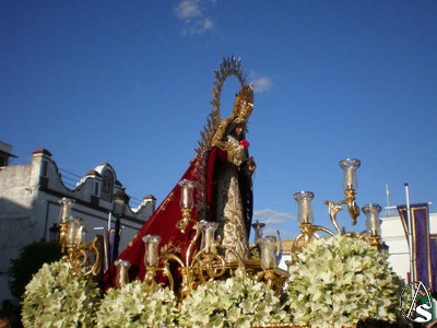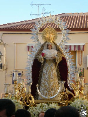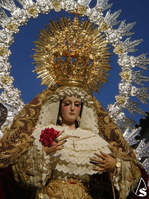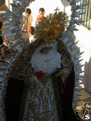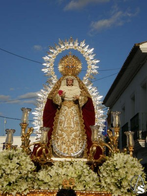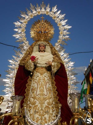 La Virgen lucia en su paso dorado, con ráfaga plateada y liliums blancos. La imagen de la Santísima Virgen, lucía el tradicional clavel rojo en sus manos, que luego sería repartido por los enfermos y necesitados del pueblo.