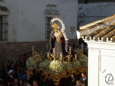 José Ramón Rodríguez García. A las 19:00 H, la Hermandad de la Soledad de Albaida del Aljarafe, sacaba en procesión gloriosa la imagen de María Santísma de los Dolores en su Soledad.