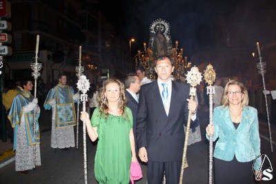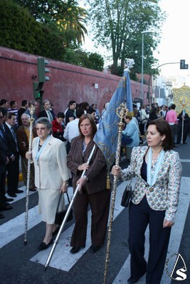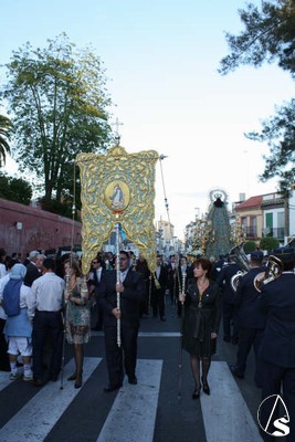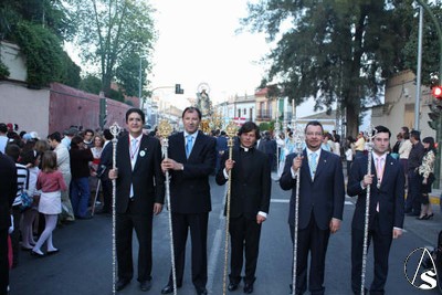 En el cortejo figuraron la Asociación de Hijas de María y el nuevo Simpecado. El paso de la Santísima Virgen fue presidido por una amplia representación, donde figuraba el Hermano Mayor, José Pinto; el Vicario Parroquial, Ildefonso Milla; el Decano del Ilustre Colegio de Abogados de Sevilla, José Joaquín Gallardo; el franciscano Fray Joaquín Pacheco; el predicador del octavario de 2008 de la Patrona, Gregorio Sillero; un sacerdote de Perú y otro Navarra que deseaban conocer la procesión de la Virgen, además de otros oficiales de la Junta de Gobierno.