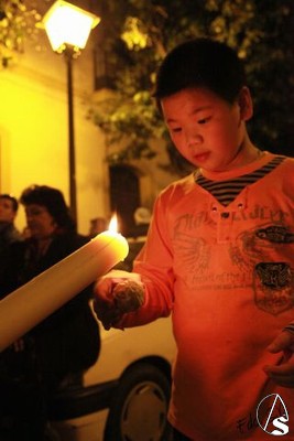Juan Alberto García Acevedo. Si nuestro amigo y periodista Carlos Navarro Antolín hubiese visto antes esta foto, quizá le hubise servido para ilustrar la portada de su libro. Y es que estos ciudadanos chinos que te montan una tienda en dos días, de estas que venden de todo y abren hasta el día de Navidad, se integran hasta en las celebraciones religiosas de nuestra ciudad.