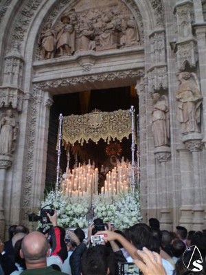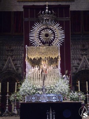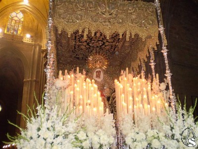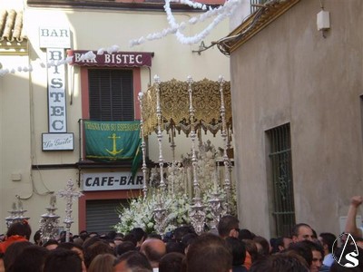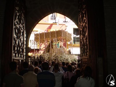 Y llegó la hora, a las once y media de la mañana a los sones de “Reina de Triana” la Virgen entraba en su capilla, sin adornos y de cara al pueblo sin antes despedirse de toda Pureza. La ultima composición musical fue la Salve Marinera interpretada por sus costaleros al arriar el paso en la capilla y por todos los allí presentes que hasta el ultimo momento querían estar con su Esperanza.