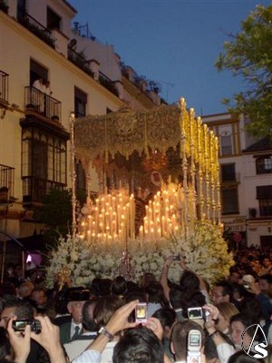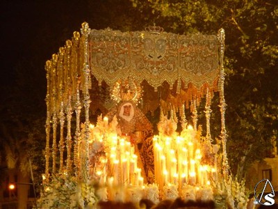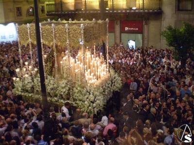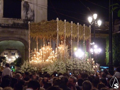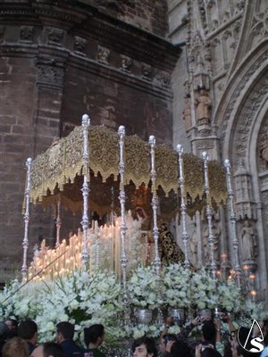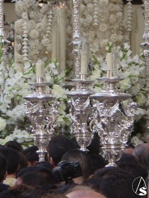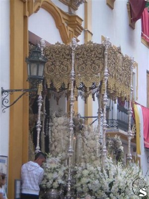 Algunos detalles también son dignos de mencionar, las flores que recordaban aquel día, el cambio en los flecos de las bambalinas recuperando la forma dentada, la posición de las manos de la dolorosa apretándose el dolor a la vez que nos ofrece la rosa, etc.