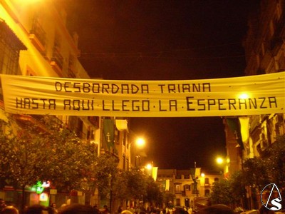 Y se llegó al puente, pero antes de cruzarlo la Esperanza se volvía de nuevo para Sevilla para despedirse de ella hasta la próxima primavera, el puente la esperaba tal y como hizo hace veinticinco años con el lema “Triana con su Esperanza” e iluminado como suele hacerlo cada velá de Santa Ana, a diferencia del día de la coronación no estaba adornado con flores ni hubo fuegos artificiales, menos mal porque las cinco de la mañana tampoco era hora para ello.