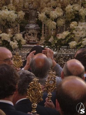 Comenzaba ahí un recorrido inédito, al llegar a la Avenida y a pesar de su amplitud era prácticamente imposible que el paso girara, revirara para otros, y avanzara debido a la marea humana que provocó que el paso tardara dos horas desde la Catedral hasta el ayuntamiento.