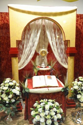 Altares, escaparates y balcones se engalanan para el paso de la procesión del Corpus Christi