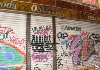 Y en este puente del Corpus, hemos visto como un comercio en concreto, Osorno, nos muestra en la calle Cerrajería las dos caras de la ciudad a la que me refiero, por un lado la parte baja castigada a más no poder por los impunes grafiteros. En la parte alta la exquisita decoración con motivo del Corpus.