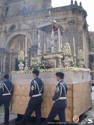 Al término de la eucaristía tendrá lugar la salida procesional del Santísimo Sacramento que será acompañado este año por el patrón de la ciudad, San José; y por San Leandro, ambos en sus respectivos pasos. Como viene siendo habitual, acompañarán la procesión el clero de la ciudad, los predicadores, la corporación municipal, autoridades civiles y militares, hermandades, asociaciones y público en general.