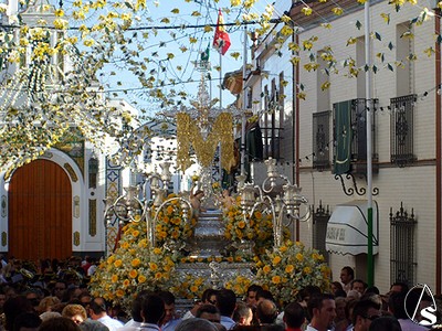 El jueves, a medianoche, la calle Andalucía es engalanada con más de 6.000 flores de papel, realizadas cada año por las mujeres de la hermandad, y que conforman una serie de arquillos de flores que se extienden a lo largo de los casi 80 metros de extensión de la calle en la que se ubica la capilla.