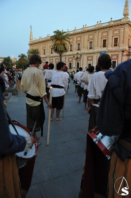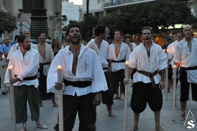 El 8 de septiembre de 1522, una sola de las cinco naves que componían la expedición de Magallanes que partieron desde el puerto de Sevilla atraca en la ciudad que los vio partir en 1519. Esta fue la Nao Victoria , que, comandada por Juan Sebastián Elcano, había conseguido completar la primera vuelta al mundo. Por este motivo tuvo lugar ayer una misa ante la Virgen de la Antigüa, precedida de la representación que muestran las imágenes, en la que se leyó un bando recordando la efeméride.