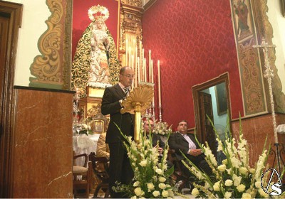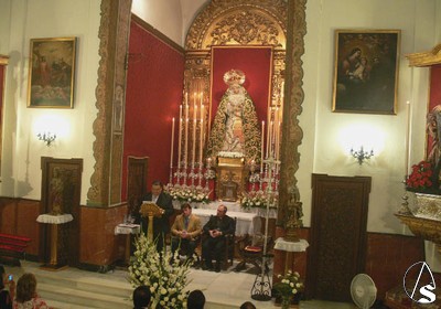 Junto a él, aparte del presentador anteriomente mencionado, el hermano mayor Emilio Santiago y el Delegado Diocesano de las Hermandades y Cofradías y, hermano de la corporación, Manuel Soria. Tras el acto, los hermanos y afines se dirigieron al Hospital de los Viejos donde celebrarían convivencia a la espera de los próximos cultos en honor a María Santísima de Regla.