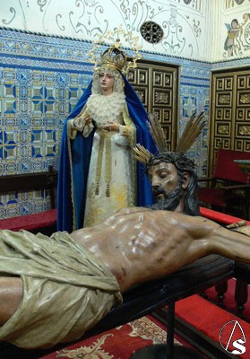 Otra imagen singular nos la dio la Hermandad de la Quinta Angustia, con sus titulares en la capilla de la Milagrosa en la iglesia de la Magdalena.