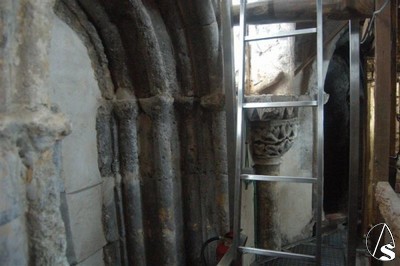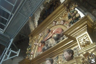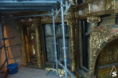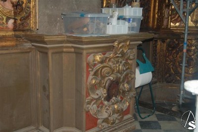 De esta última fase del proyecto destaca la realización y colocación fija de una plataforma de acero inoxidable en el hueco posterior entre el muro y el retablo, que ha posibilitado la eliminación del cableado de instalación eléctrica antigua y la colocación de una nueva instalación de luz y puntos de conexión. Esta plataforma permitirá en el futuro el acceso para tareas de conservación del retablo.