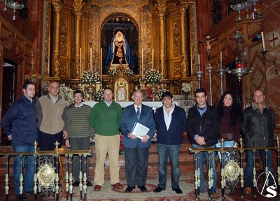 Arte Sacro. El Hermano Mayor de la Hermandad de la Macarena, Manuel García García y miembros de su Junta de Gobierno, acogieron el pasado día 3 de marzo en la Basílica de la Esperanza Macarena a la Sociedad Filarmónica Ntra. Sra. de la Oliva de Salteras para recibir de manos de su director, José Manuel Bernal, las composiciónes que fueron dedicadas a la Dolorosa de San Gil el pasado año 2009.